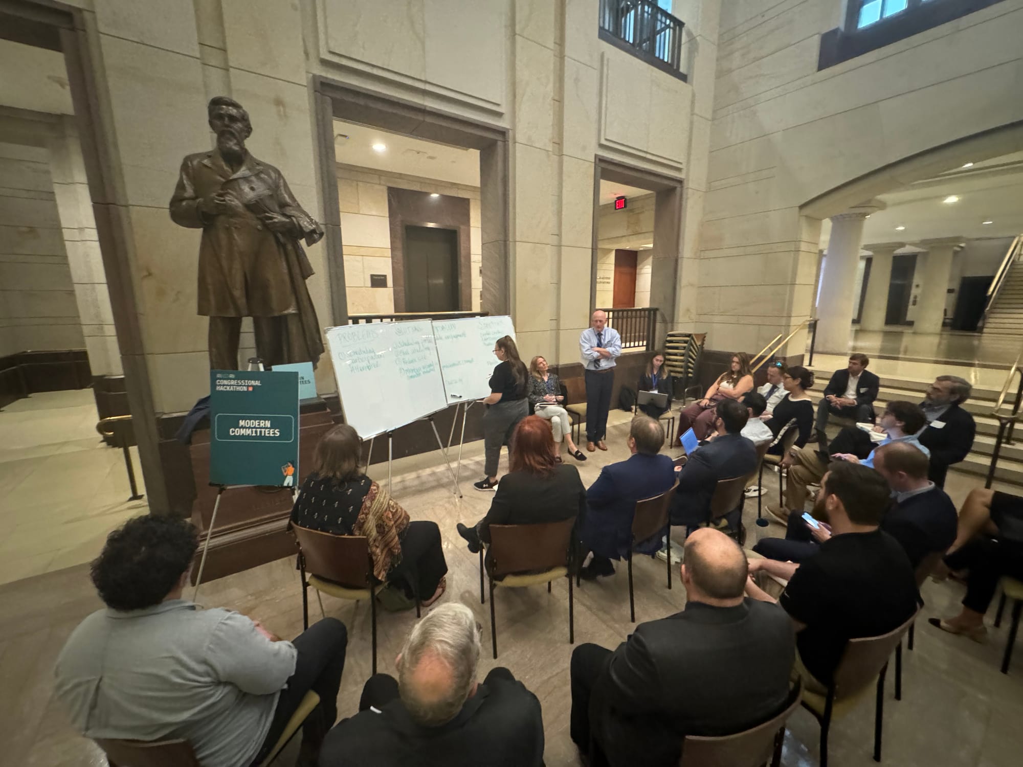 By necessity, then, the Congressional hackathon has instead evolved into a hybrid event featuring speeches from Congressional leaders and House administrative staff, followed by panel discussions, pitches and presentations from staffers or external developers and students, breakout groups that brainstorm ideas that could help Congress work better, and then development over the course of the year to follow.