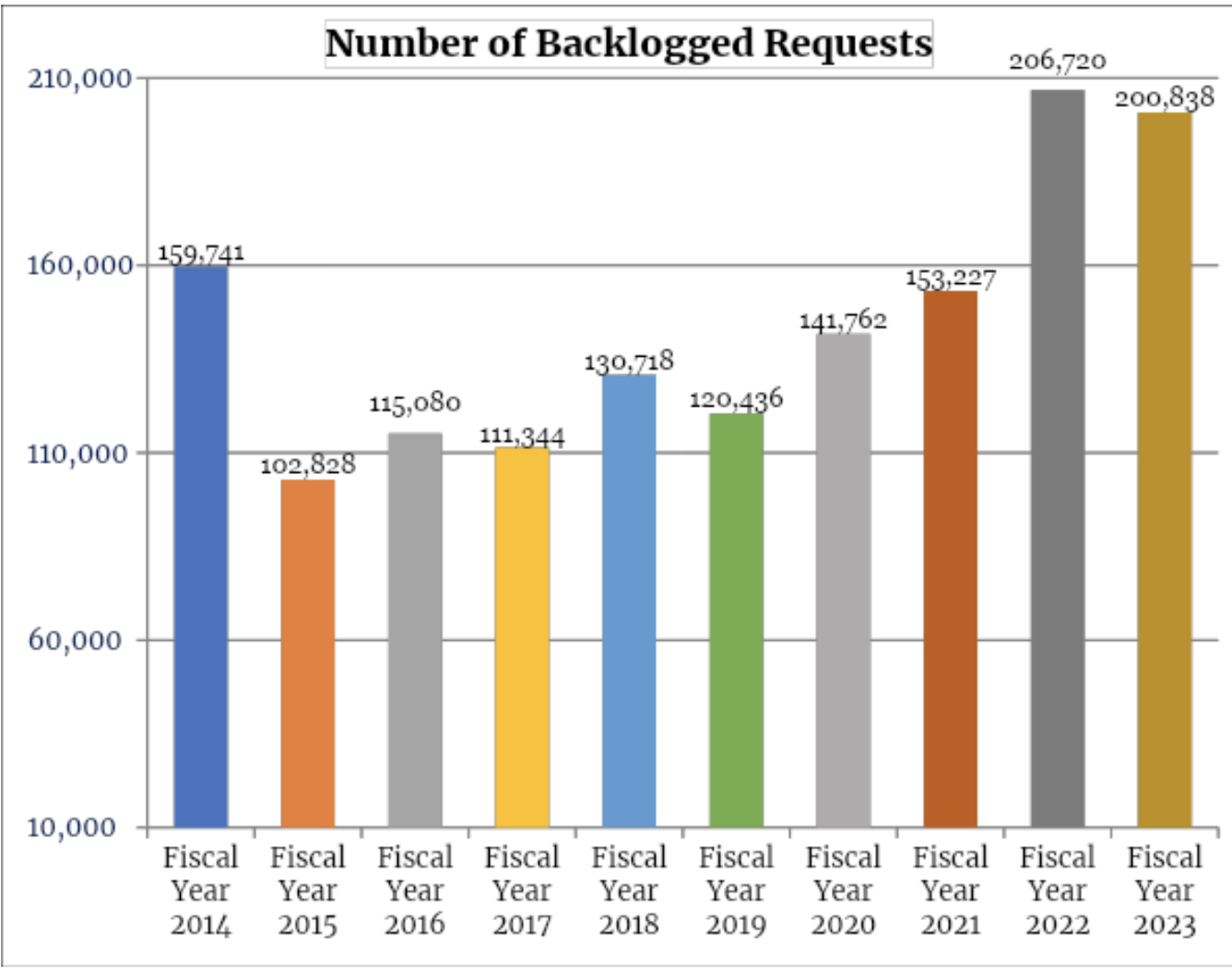 The bit I want to focus on today, however, is not OIP celebrating a slight improvement in the backlog of FOIA requests – potentially because of a ride in partial disclosures! – but the public comment period at the end.