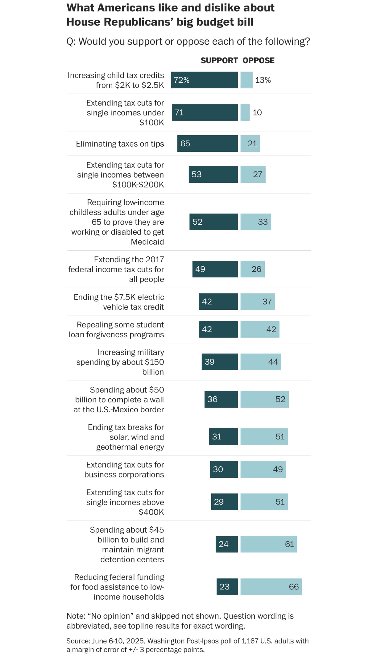 As Punchbowl News reports, “a plurality of Americans oppose the GOP reconciliation bill, just 67% of Republicans support the package and 71% of independents have an unfavorable view of the effort.”