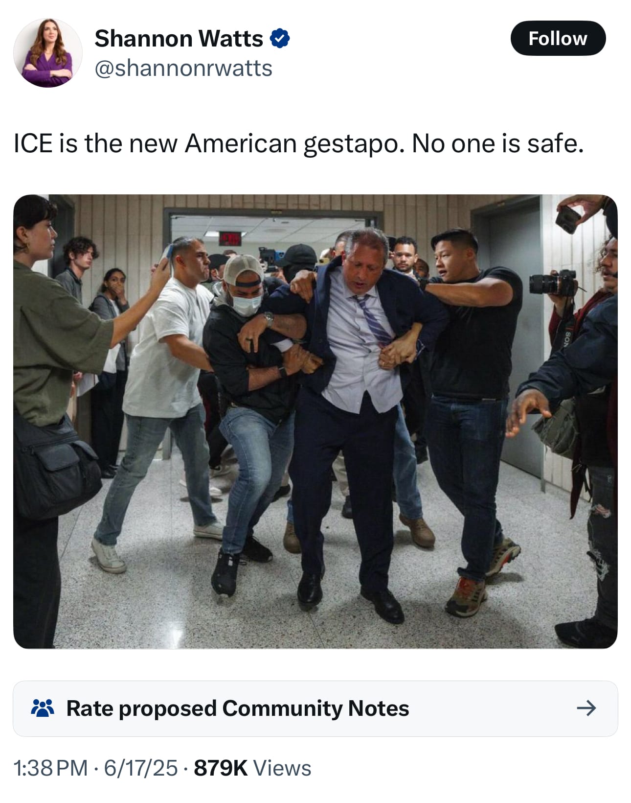 As Heffernan pointed out, “ICE—and unbadged people in plain clothes—have now detained or arrested 4 elected government officials, all of them Democrats, and one circuit judge. None of them committed immigration offenses.”