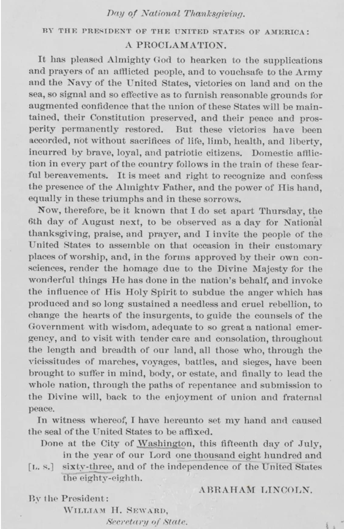 Our National Day of Thanksgiving originated during the Civil War, when the first Republican President, Abraham Lincoln, called on all Americans to give thanks for our defense of the union against a cruel rebellion.