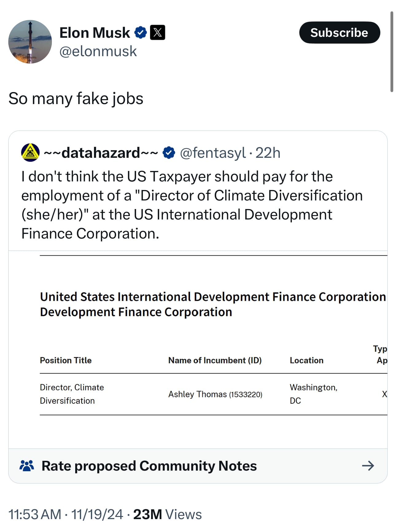 I’ll have more to say about the imaginary “Department of Government Efficiency” and what it means in the future, but it’s important to say right now that there is no “Department of Government Efficiency” yet.