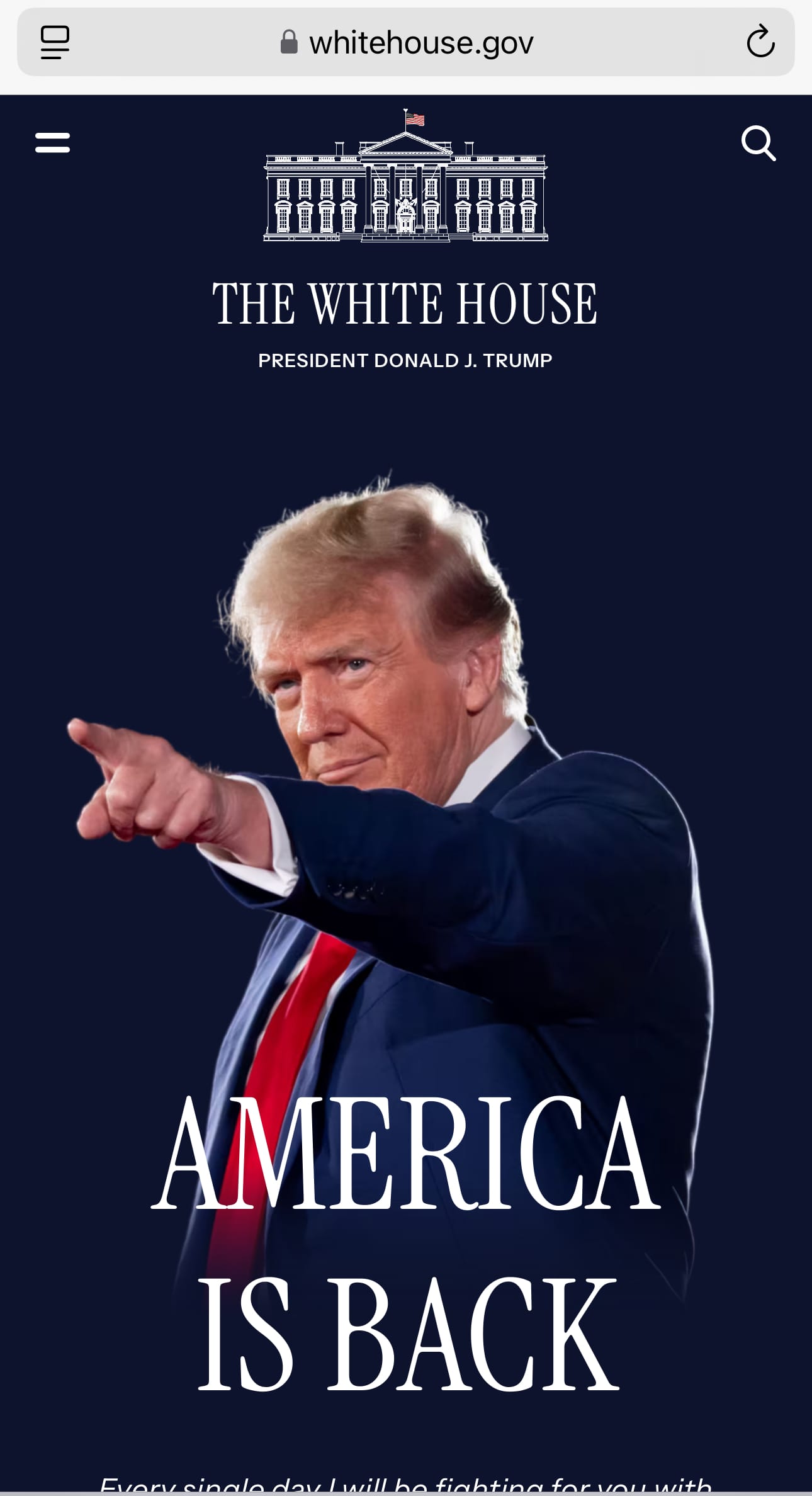 This won’t be the last time you hear from me today. If reports proved to be accurate, we might see over 100 executive orders issued today. I’ll circle back on that, along with any other official actions we see. The new WhiteHouse.gov is live. The old one is archived by NARA.