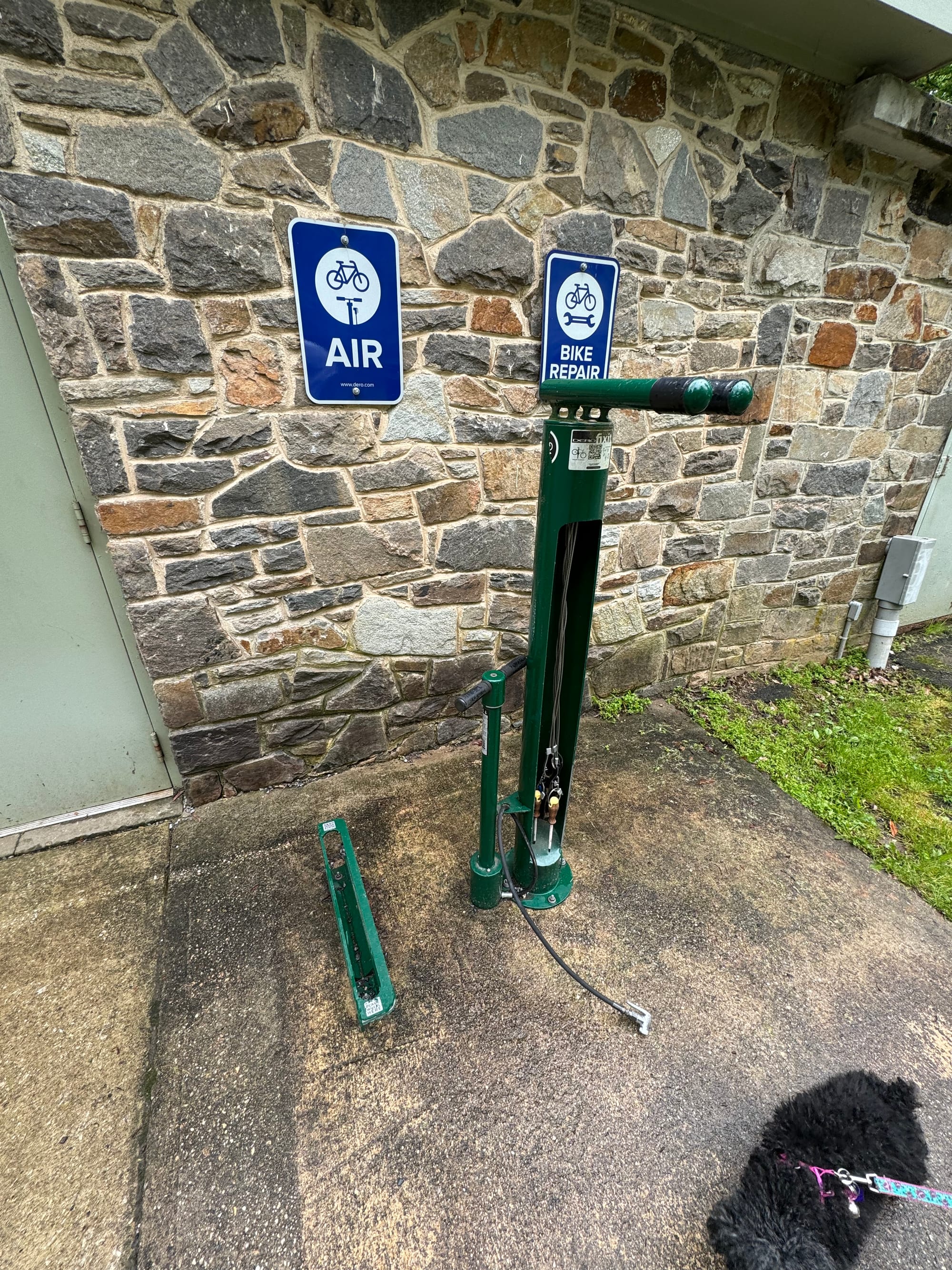 Infrastructure can look like bike maintenance stations with air and tools, too, like this one in Baltimore.