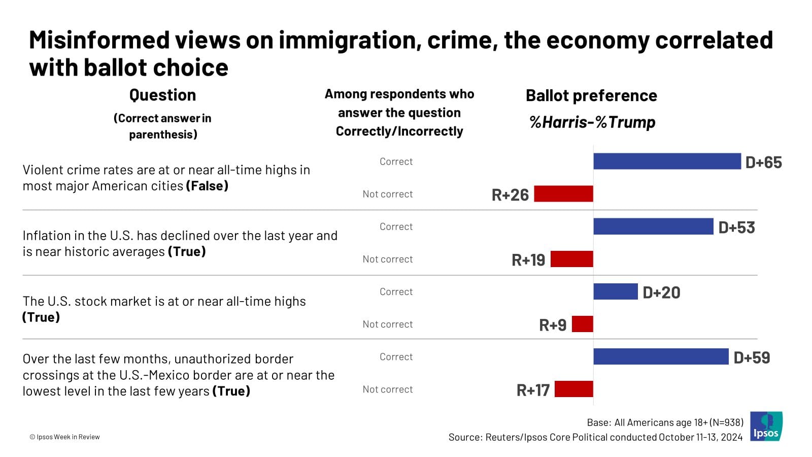 If people falsely believe crime is up, inflation is off the charts, the stock market is flat, & border crossings are surging, then they will vote accordingly, just as they will engage in insurrection if they believe an election was stolen.